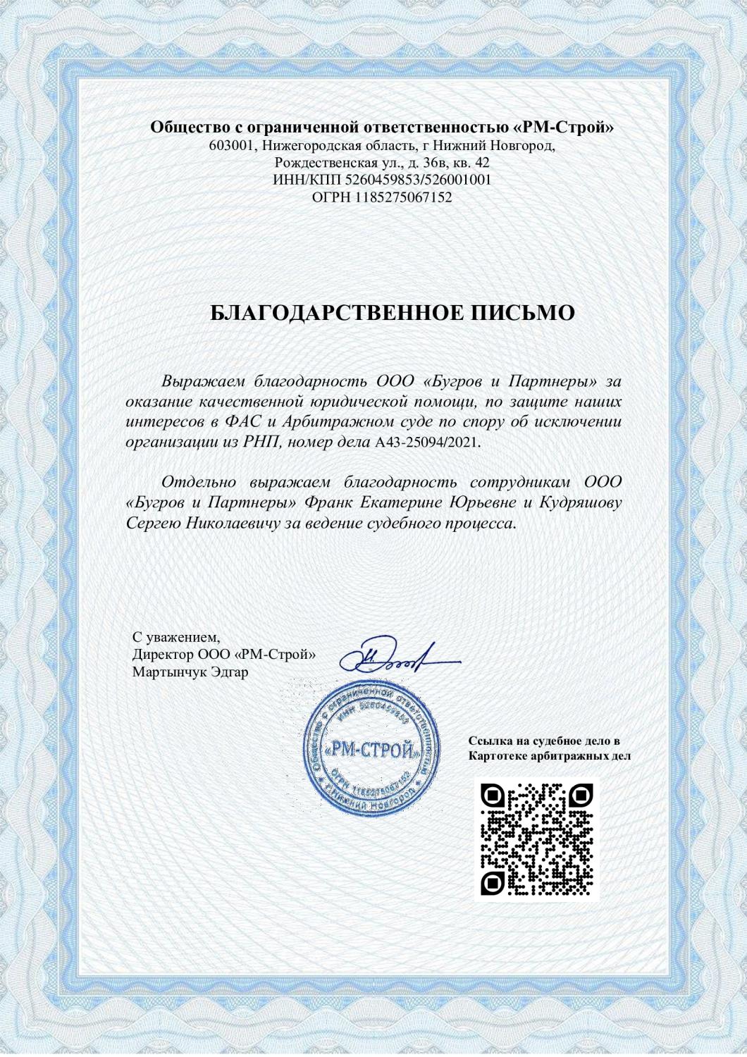 За оказание качественной юридической помощи по защите интересов в ФАС и Арбитражном суде